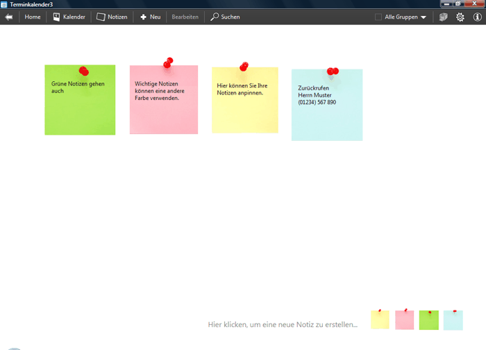 Auch anstehende Aufgaben und kurze Notizen können im Terminkalender eingegeben werden, damit Sie nicht mehr 100 Zettel auf Ihrem Schreibtisch liegen haben.
