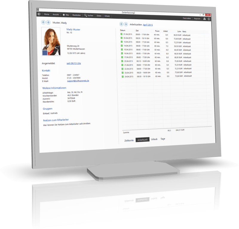 Die Zeiterfassung von softwarenetz.de ist ein einfaches anwenderfreundliches Programm zur Erfassung von Arbeitszeiten und für die Urlaubsplanung Ihrer Mitarbeiter.